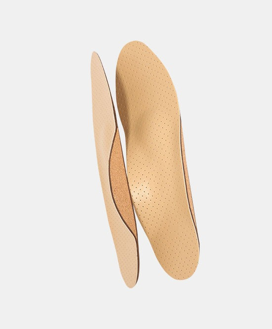 خليط كورك مطاطي مع سطح جلدي علوي، يوفّر دعماً للقوسين الطولي والمستعرض ويُوزّع الضغط لتقليل الألم أثناء الوقوف والمشي.