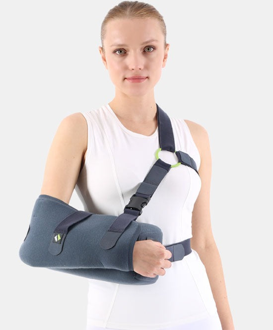 حمّالة مبطّنة بزاوية 30° تُثبّت الذراع بمحاذاة الجسم وبشكلٍ موازٍ للأرض لتقليل الحركة غير المرغوبة. مصنوعة من قماش إسفنجي مريح للجلد، ومناسبة لليد اليمنى أو اليسرى. يتوفر حزام خصر إضافي لزيادة الثبات وسهولة الاستخدام اليومي خلال التعافي.