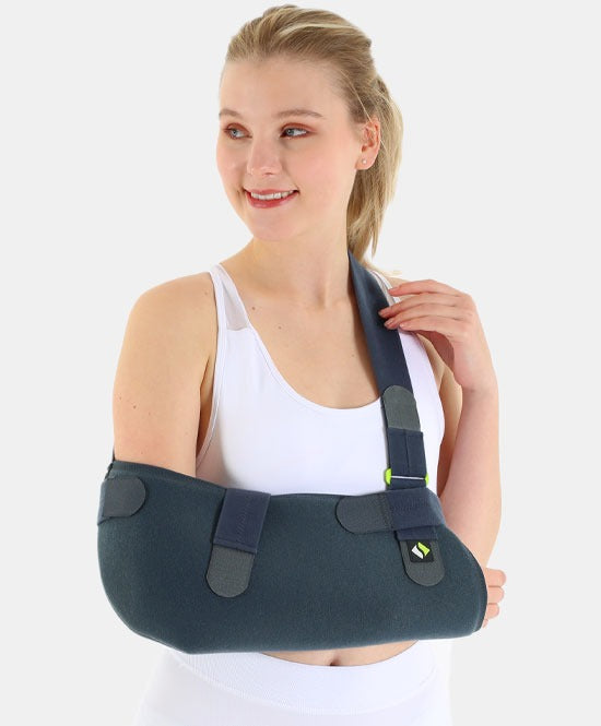 حمّالة ذراع بتصميم مريح يدعم الذراع ويثبّته بمحاذاة الجسم لتقليل الحركة غير المرغوبة. الواجهة الداخلية من قماش مناشف لطيف على البشرة، والواجهة الخارجية من قماش إسفنجي متين، مع تصميم تشريحي يتوافق مع منطقة الذراع والكتف. مناسبة لليد اليمنى أو اليسرى على حدّ سواء، وتساعد على الحدّ من الانزعاج وتسريع التعافي اليومي.