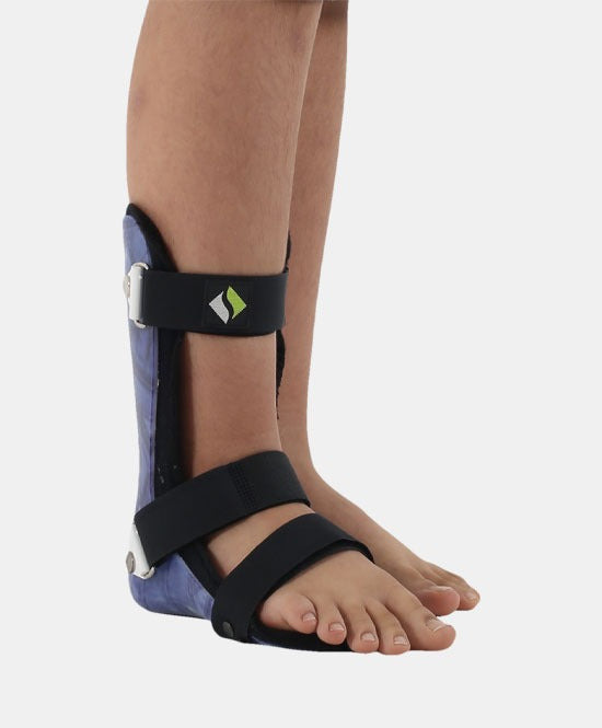 جبيرة كاحل بأشرطة شدّ للثني الظهراني لضبط الشدّ تدريجيًا مع بطانة داخلية إسفنجية مريحة وسطح سُفلي مانع للانزلاق للمشي لمسافات قصيرة.