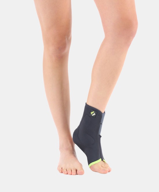 نيوبرين مريح مع وسادتين محيطيتين لدعم الكعبين الداخلي والخارجي (المَلاَلَتان)، يمنح ضغطًا موضعيًا يخفّف التورّم والألم ويحسّن الثبات.