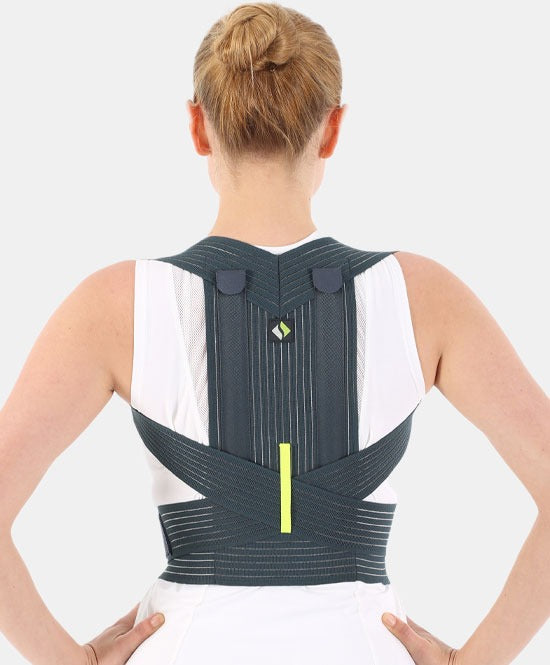 قماش مرن قابل للتنفس مع دعامات ظهرية بلاستيكية تساعد على سحب الكتفين برفق وتقويم أعلى الظهر وتقليل الإجهاد العضلي.