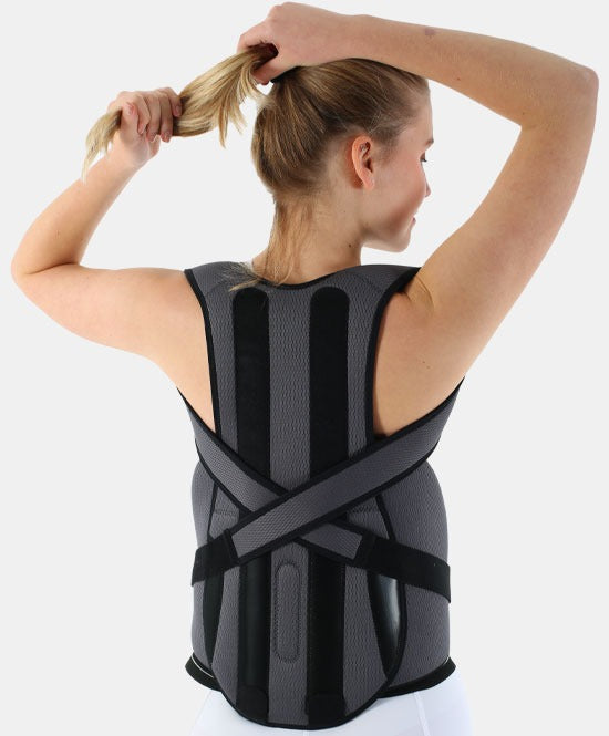 مشد ظهر ببطانة مريحة وقماش قابل للتنفّس ومضاد للحساسية، مُصمّم ليلائم تشريح الجذع ويوفّر ثباتًا وظيفيًا يوميًا. يضم قضيبين خلفيين من الفولاذ يمتدان من الحوض حتى أعلى لوح الكتف مع حلقة/شريط ألومنيوم حول الحوض لتعزيز التثبيت. يهدف إلى تقييد الانثناء والتمدد والدوران للمساعدة على التعافي الآمن. :contentReference[oaicite:0]{index=0}